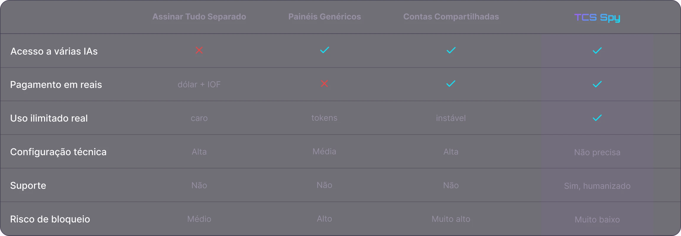 Veja como o TCS Spy se compara com outras alternativas no mercado
